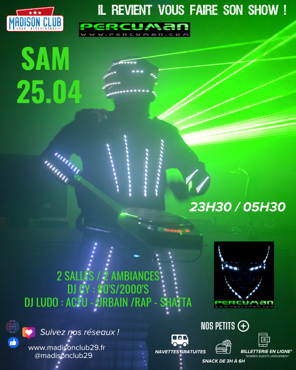 Pour plus d'infos ou pour réserver votre soirée, n'hésitez pas à nous contacter sur les réseaux Madison Club ou au 02 98 71 44 85